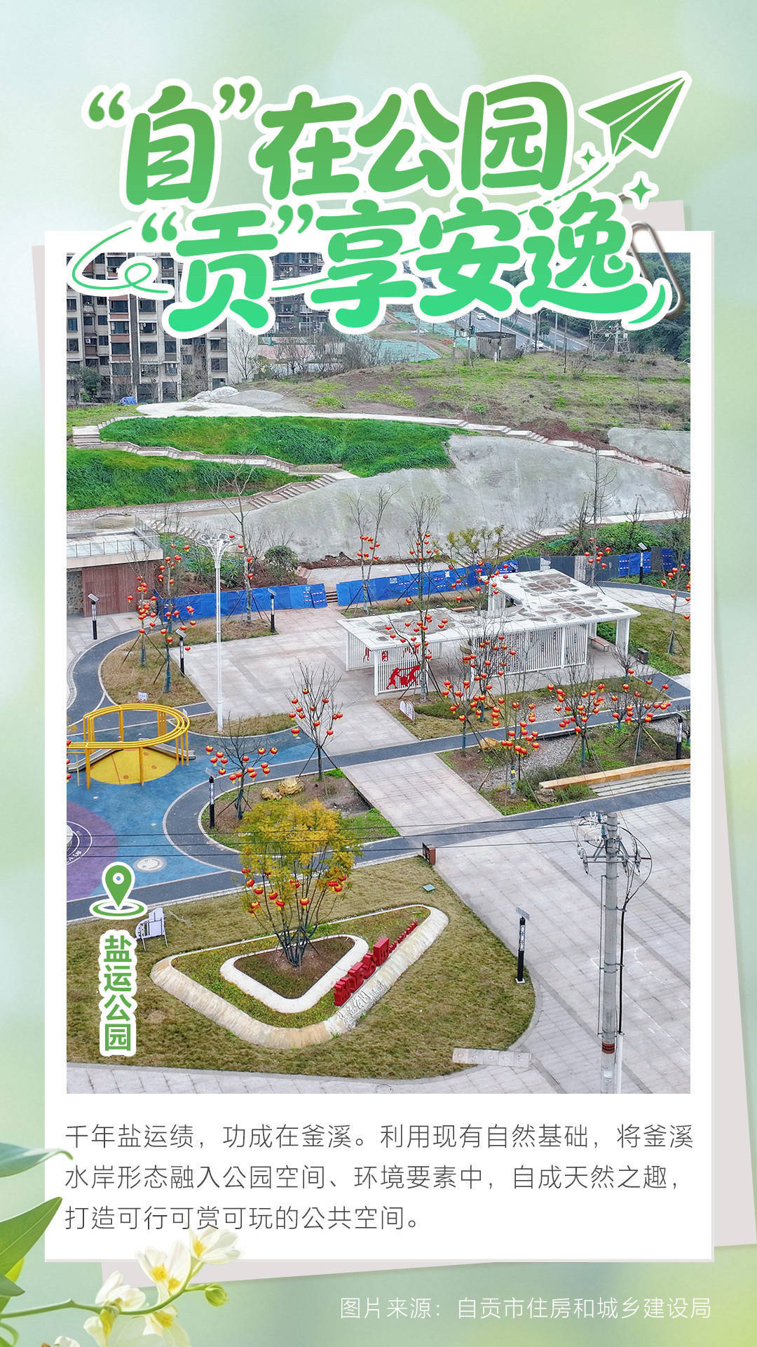 赵祖乐 手脚千年盐王人、中国灯城、老工业城市,频年来,四川自贡坚捏以东谈主民为中心,捏续股东城市更新活动,握住莳植各人空间品性和城市东谈主居环境。 自贡把“口袋公园”辅助手脚股东城市更新职责的伏击举措,聚焦“剩余空间、工业锈带、山水资源”等维度,通过见缝插绿、拆墙透绿、留白增绿等步伐,应用八街九陌、墙脚坎底、残缺立面等城市闲置用地,因地制宜、依山就势辅助城市口袋公园和邮票绿地。 “公园城市,闲静家园”!即日起,东谈主民网四川频谈联贯自贡市住房和城乡辅助局,共同开设“‘自’在公园‘贡’享闲静——四川自贡‘口袋公园’”主题展,带网友线上“云游”自贡“口袋公园”好意思景。 主题展(第四集)将走进自贡市沿滩区狮子山体育公园、盐运公园、王家大院山体公园、昊华口袋公园。    云开体育