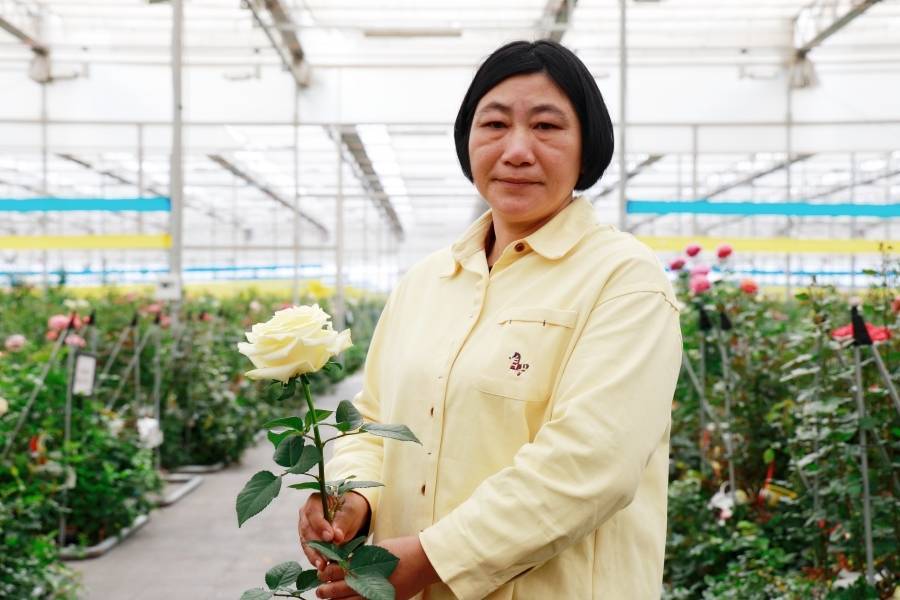 云南省农业科学院花草参谋所蔡艳飞团队发布“文秀”月季花语(3月18日摄)。新华网 赵普凡 摄以花喻东说念主