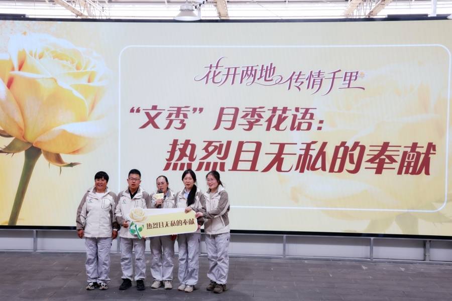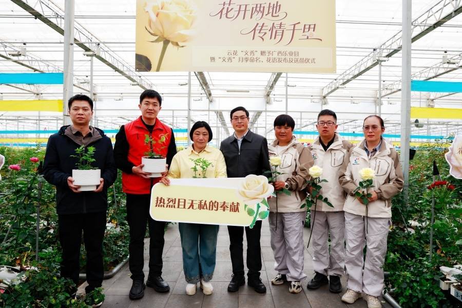 “文秀”月季送苗典礼现场(3月18日摄)。新华网 赵普凡 摄云南省农业科学院花草参谋所育种团队